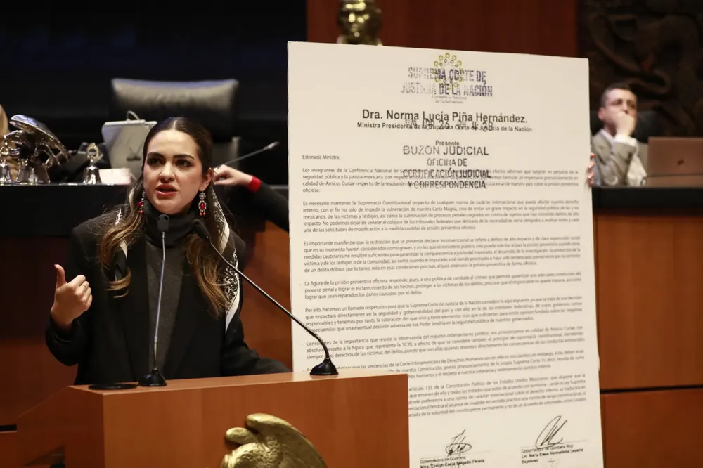 La senadora subrayó que la prisión preventiva oficiosa se activa de manera automática para garantizar la seguridad del proceso penal, mientras que en el caso de la justificada, la decisión depende de un juez.