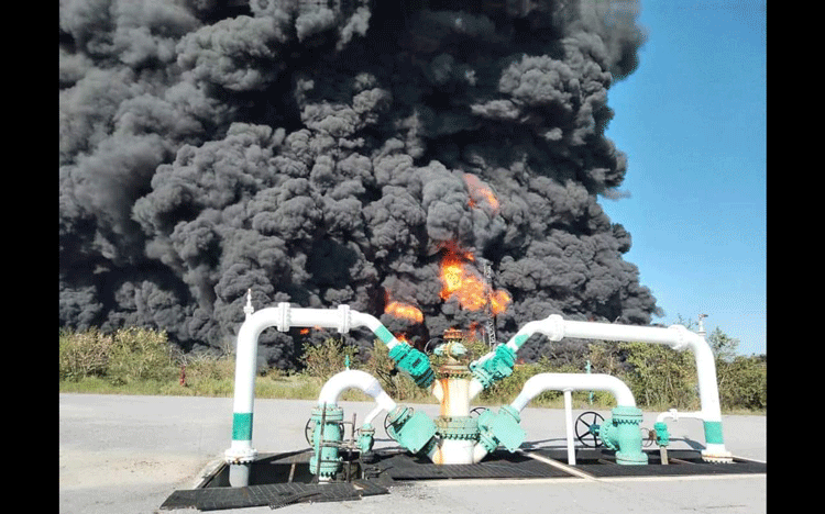 Un voraz incendio se registró en el Centro de Almacenamiento de crudo de Pemex ubicado en Ixhuatlán del Sureste, en Veracruz.